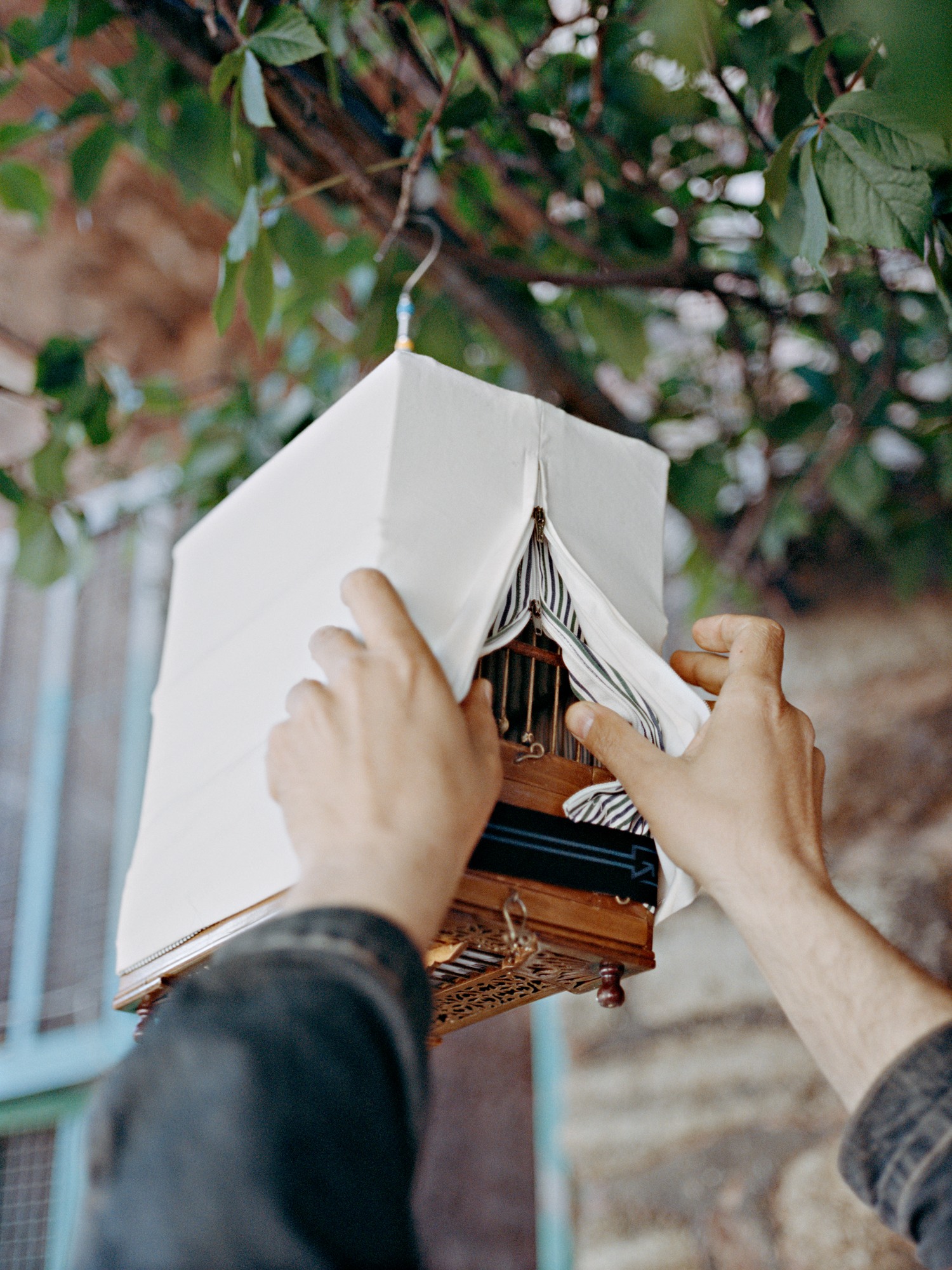 The birdmen hide the birds under pieces of garment covering their cages in order to make them sing more beautifully. So the secrecy was already there, as photographers we then kept it in our project. For us, photographing something hidden is very attractive and inviting. We really liked the idea that the bird instead would appear in the mind of the viewer. Of course, we had access to photograph the actual birds if we wanted to, but not showing them was a conceptual decision we made. To put it simply, we were amazed by this relationship between a man and a box in a world stuffed with representations of birds.