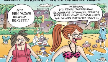 Avcilar is also home to Ezgi Aksoy and Feyhan Güver, both taking part in and spearheading a unique media endeavour: Bayan Yanı, a satirical magazine publishing only women cartoonists. “It all started in March 2011 as a one off issue,” recalls Aksoy. “We gathered writers and cartoonists already working for the more general satirical magazine Le Man [one of Turkey’s three top satirical magazines, along with Penguen and Uykusuz]. We wanted to print a special magazine for the International Women’s Day, because at this time women’s rights were starting to become under threat in Turkey. We made the first issue and decided to continue after receiving feedback encouraging us to do so.”