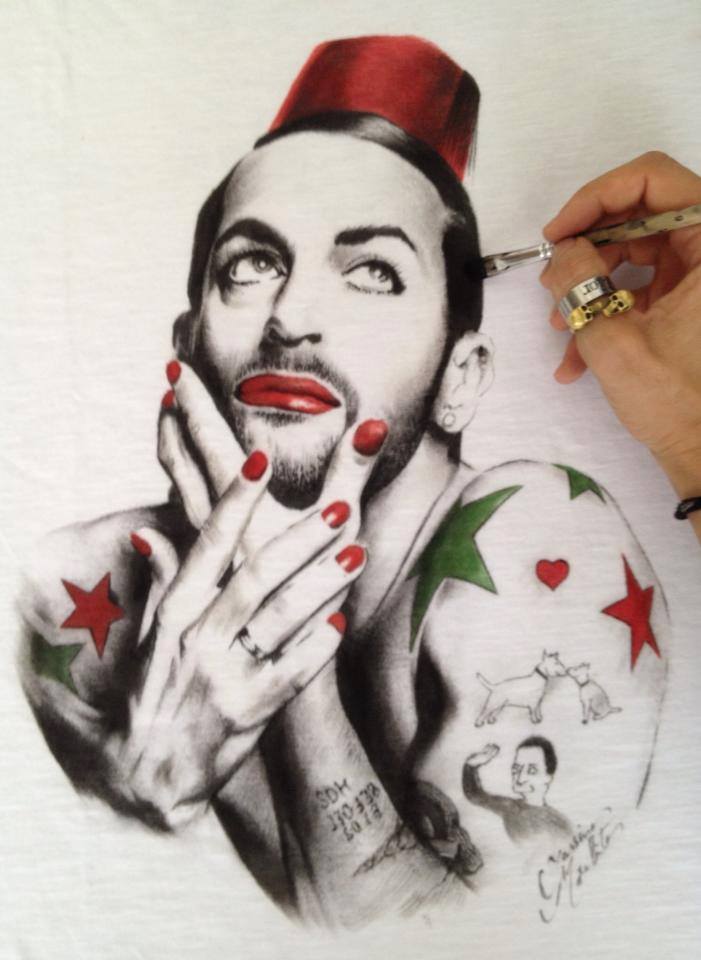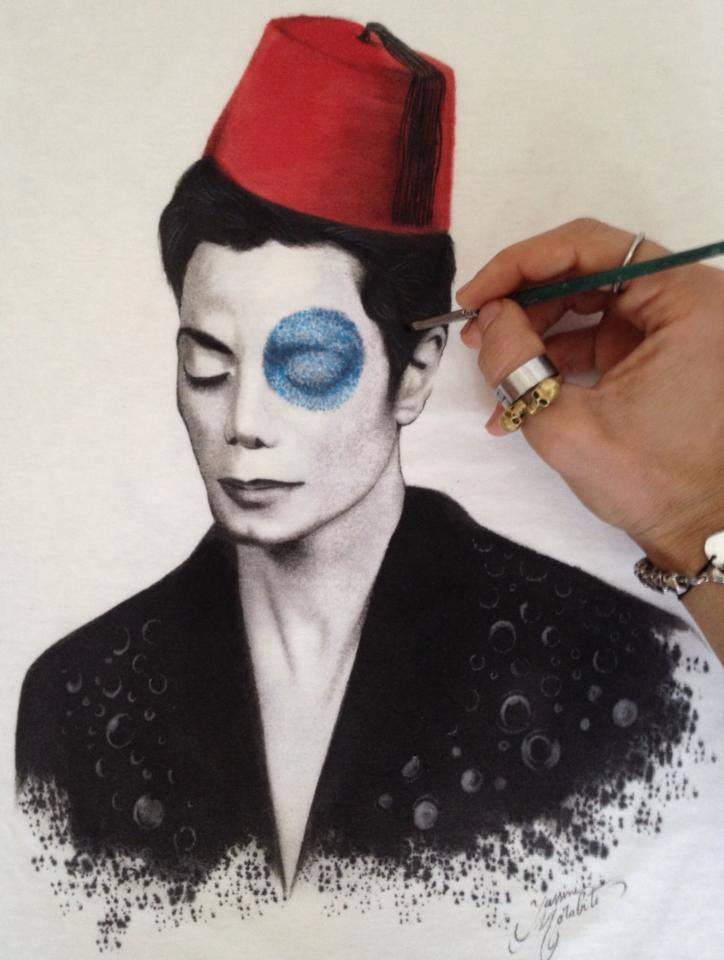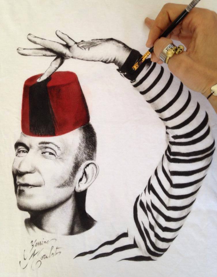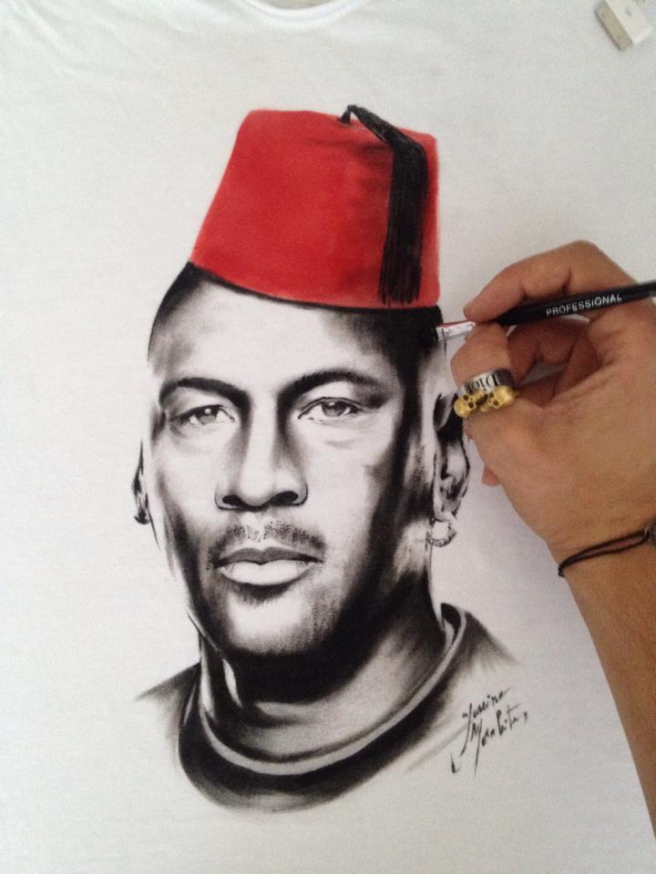 Yassine Morabite is a Moroccan designer and artist born and working in Casablanca. Besides designing clothes and outfits he sketches portraits: often in black and white, with unexpected added details. Madonna has been portrayed wearing North African jewellery; Michael Jackson and Jimi Hendrix with make-up like the Mexican calavera. We love Yassine’s most recent drawings, where celebrities have been given the signature red fez, so we got in touch to ask a bit about them.