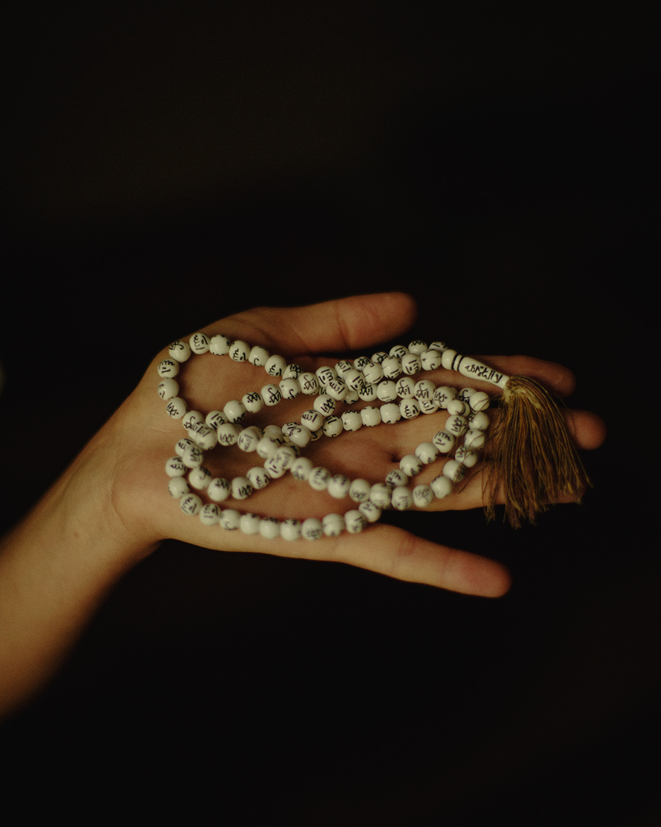 Around ten women have joined the ceremony, which starts with all of them seated in a circle. La ilaha illallah – “There is no God but God” – they sing, following Raisa’s powerful voice. This and other sentences are repeated many times throughout the ritual. Altogether, the women stand up and start walking in circles at an increasing pace. They clap hands and stamp, all the while continuing the singing. In between such dynamic parts, they stand still and sing graceful hymns in the Chechen language. At the end of the ritual, the room has turned warmer and a specific vibe unites all the practitioners. Before leaving the white building, the women hug each other and the visitors who have joined to watch the ceremony.