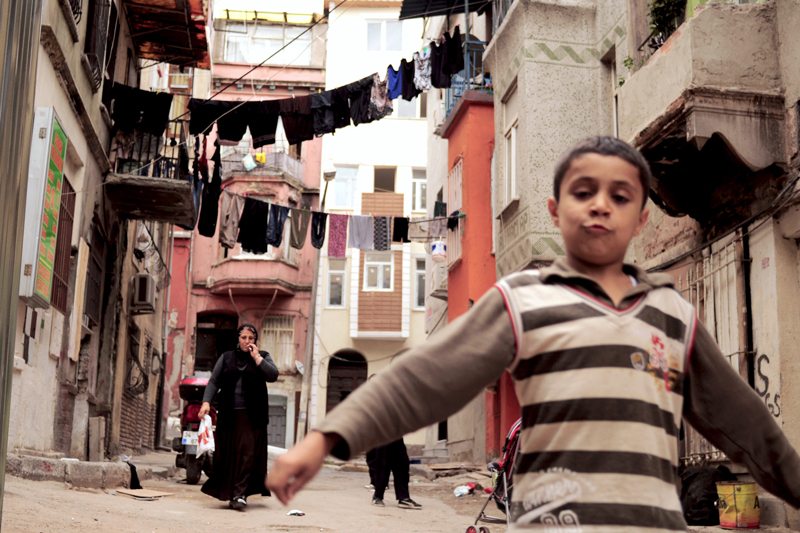 A child walking down the street in an area of Tarlabaşı inhabited primarily by Kurds.