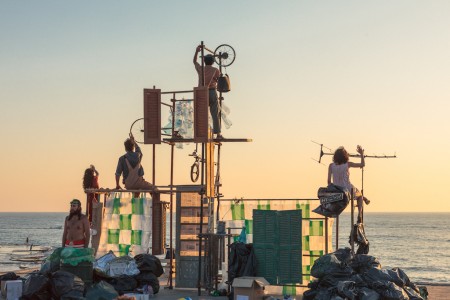 10453: A Story About Life in 1 km2 of Trash is an original play developed with a cast of five actors and written and directed by Camille Brunel-Aoun. The title alludes to Lebanon’s growing kilometres of trash and the set alone, designed by Charbel Samuel Aoun, leaves a lasting impression: a 5 meter high structure created from discarded metals, plastics and wood and covered in heaps of trash bags. Using powerful images of everyday garbage, humour and an original musical score, 10453 examines Lebanese social behaviour towards trash.