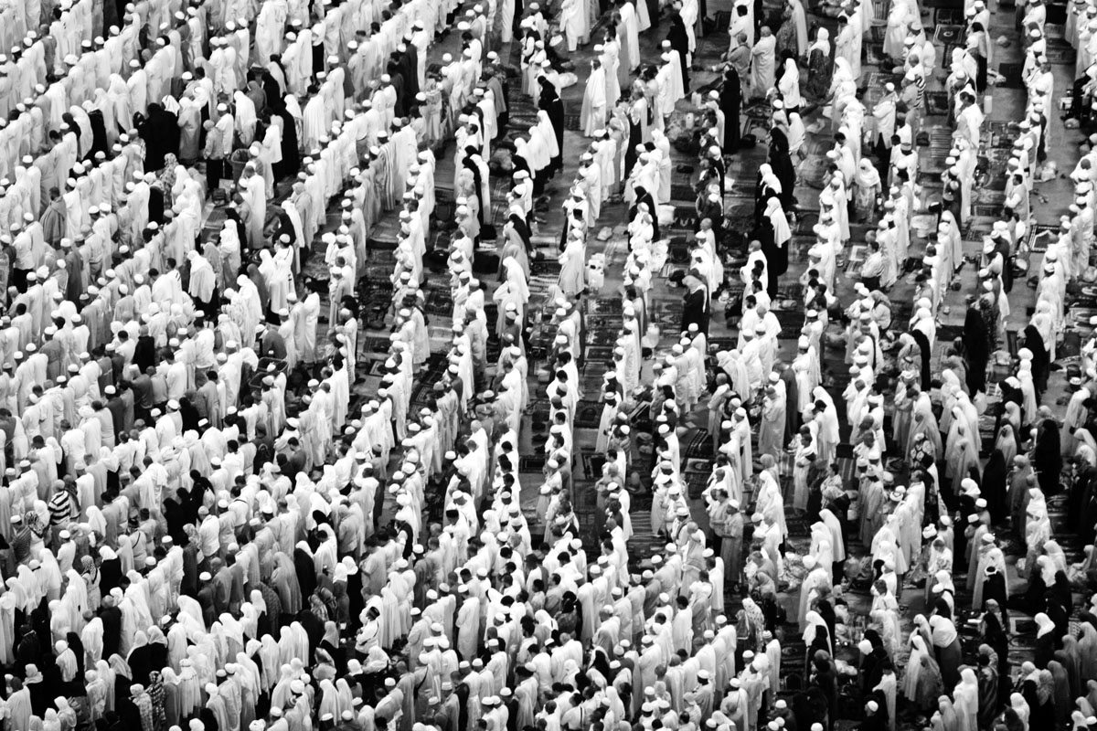 Everybody looks the same, everything is white. I’ve been ploughing my way through the crowds for the last five hours, carrying my two cameras. I want to push, but the words of my uncle are ringing in my ear. “Don’t push people, it’s forbidden to push,” he told me before my departure. So I let the crowd carry me along. We are moving towards Mount Arafat where a sea of white robes converge on a rocky desert hill outside Mecca. Hajj is a special journey, I have never seen millions of people concentrating on the same thing: their God and their beliefs. It’s mystical and spiritual at the same time.”